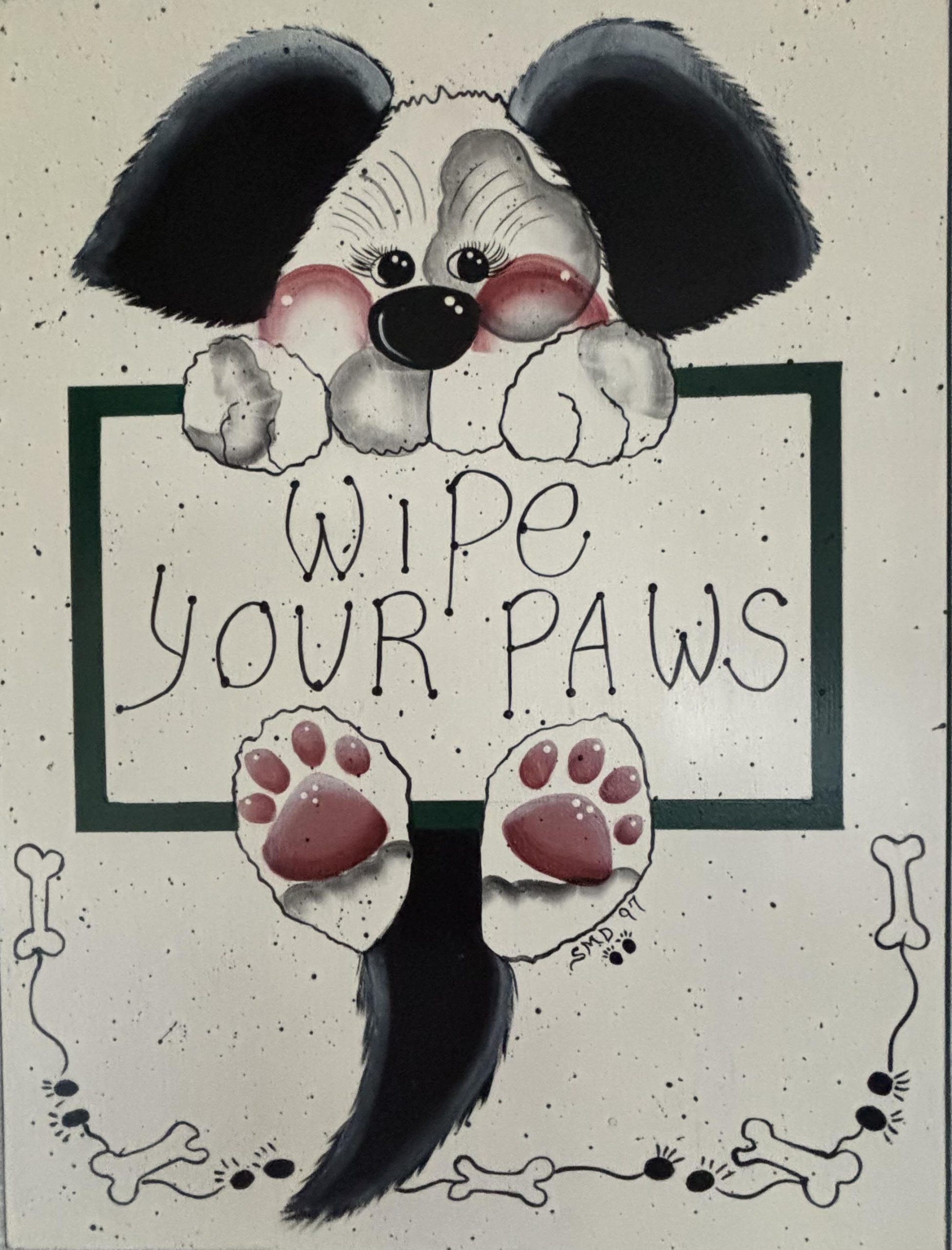 My first piece was a cute little puppy, holding a sign that said Wipe Your Paws at